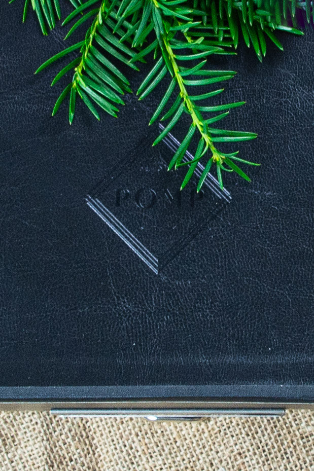 Die Kanzlei-Box ist handmade in Hessen – von der Buchbinder-Werkstatt unseres Vertrauens. Die mit POMP gefüllte Kanzlei-Box ist für größere Firmen-Weihnachtsgeschenke Bestellungen auch in individueller Farbe und mit deinem Firmenlogo geprägt, bestellbar. Bitte Produktionszeiten einkalkulieren. Gleich anfragen.