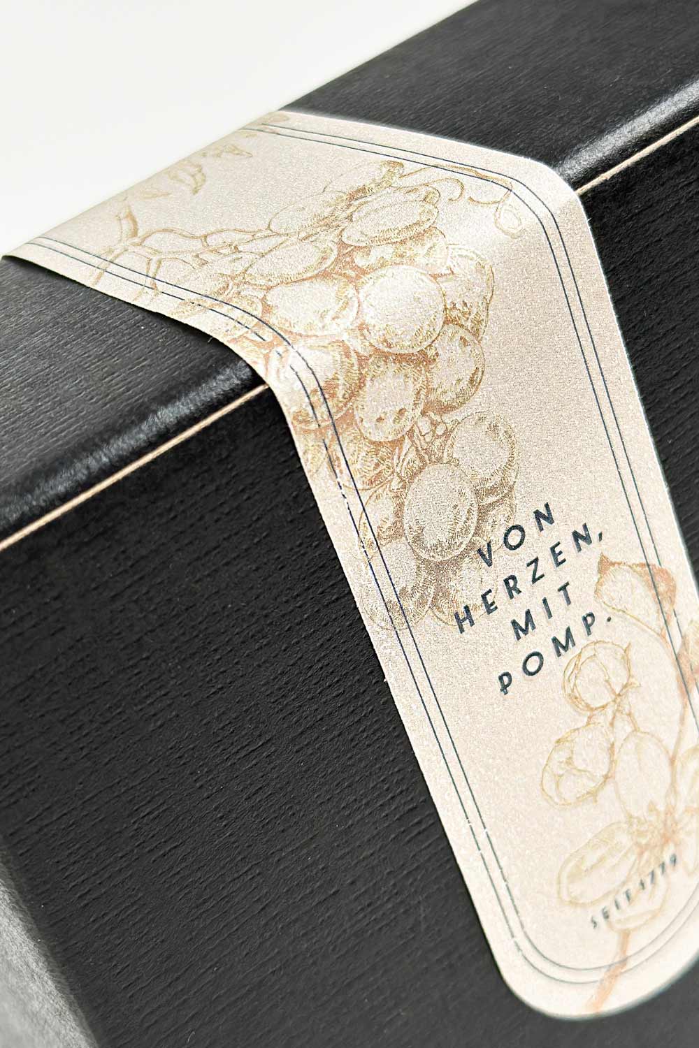 - Hochwertige schwarze Geschenkbox mit Banderole