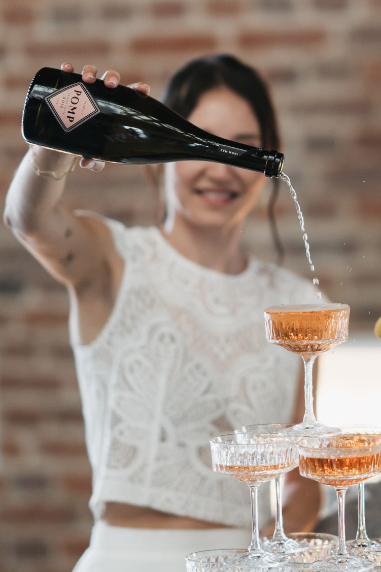 Serviere die POMP Rosé Cuvée wie einen Sekt – schön eisgekühlt.