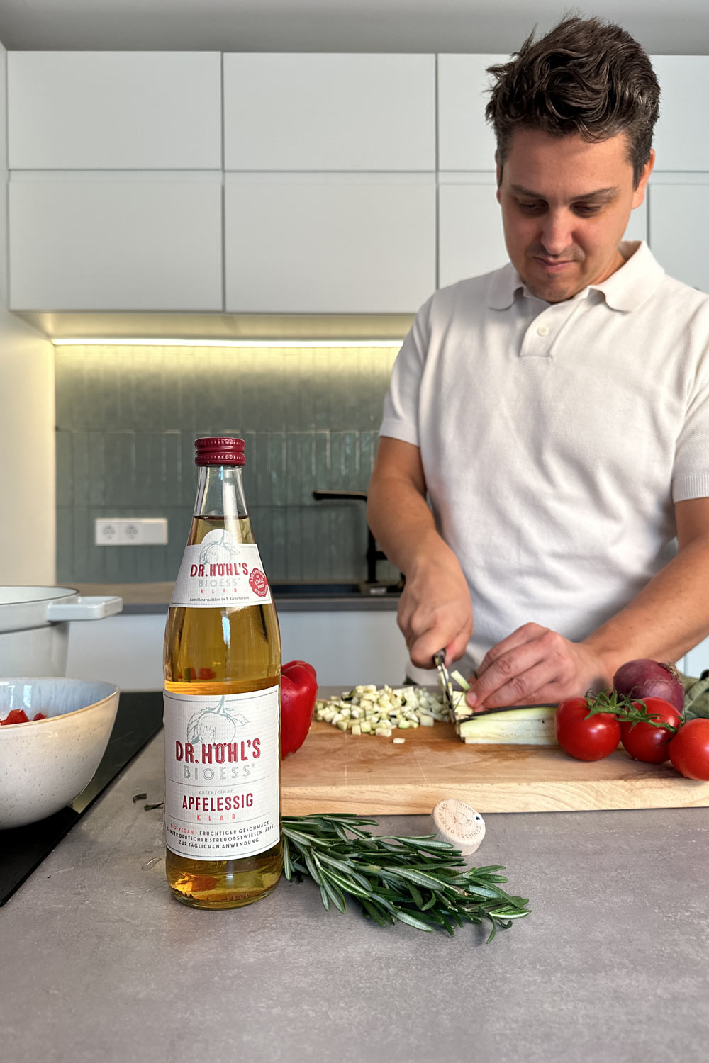 DR. HÖHL'S BioEss clear apple cider vinegar is our all-rounder for fine vegan everyday cooking.