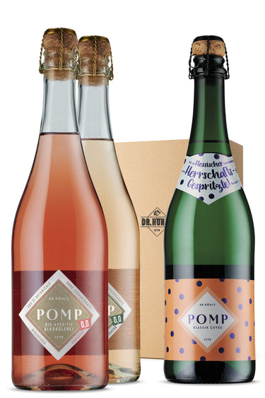 Ob BioEss Apfelessig, unsere feinen POMP Cuvées oder die alkoholfreien Bio-Aperitifs von POMP: Bei jeder Kreation ist uns maximaler Genuss genauso wichtig, wie das Wohlbefinden unserer Mitmenschen. Wir möchten, das andere etwas davon haben, dass es uns gibt.