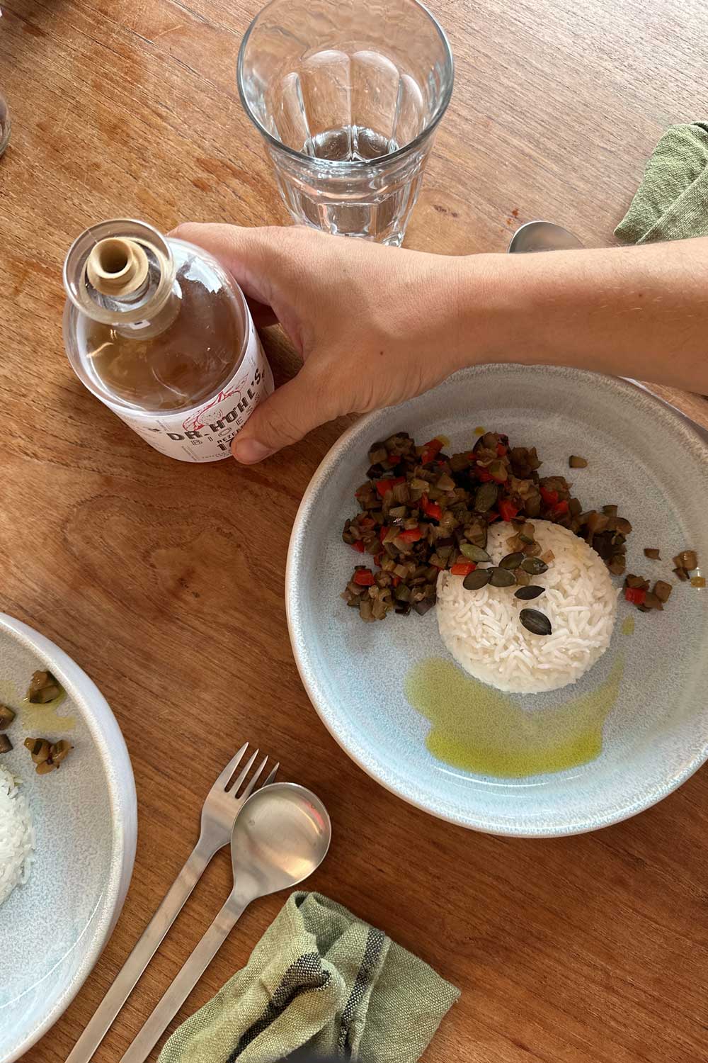 Unsere Apfelessig-Honig-Mixtur entfaltet einen fein abgestimmten süß-sauren Geschmack, der perfekt ausbalanciert ist. Dieser Geheimtipp verleiht deinen Gerichten im Handumdrehen ein sensationelles Aroma – ein absolut grandioses Finish für deine Küche oder für unterwegs, wenn du das gewisse Extra vermisst!